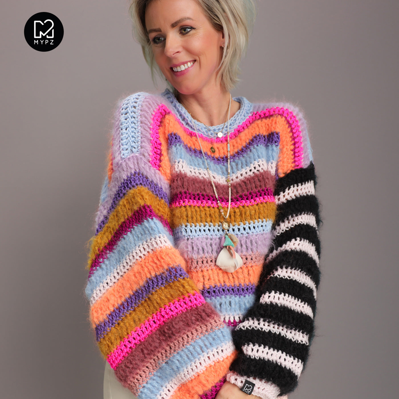 This is a handmade knit made by MYPZ in The Netherlands. Each cardigan or sweater is a unique piece and we take a lot of time and care to create these beautiful products. This sweater has a oversized fit