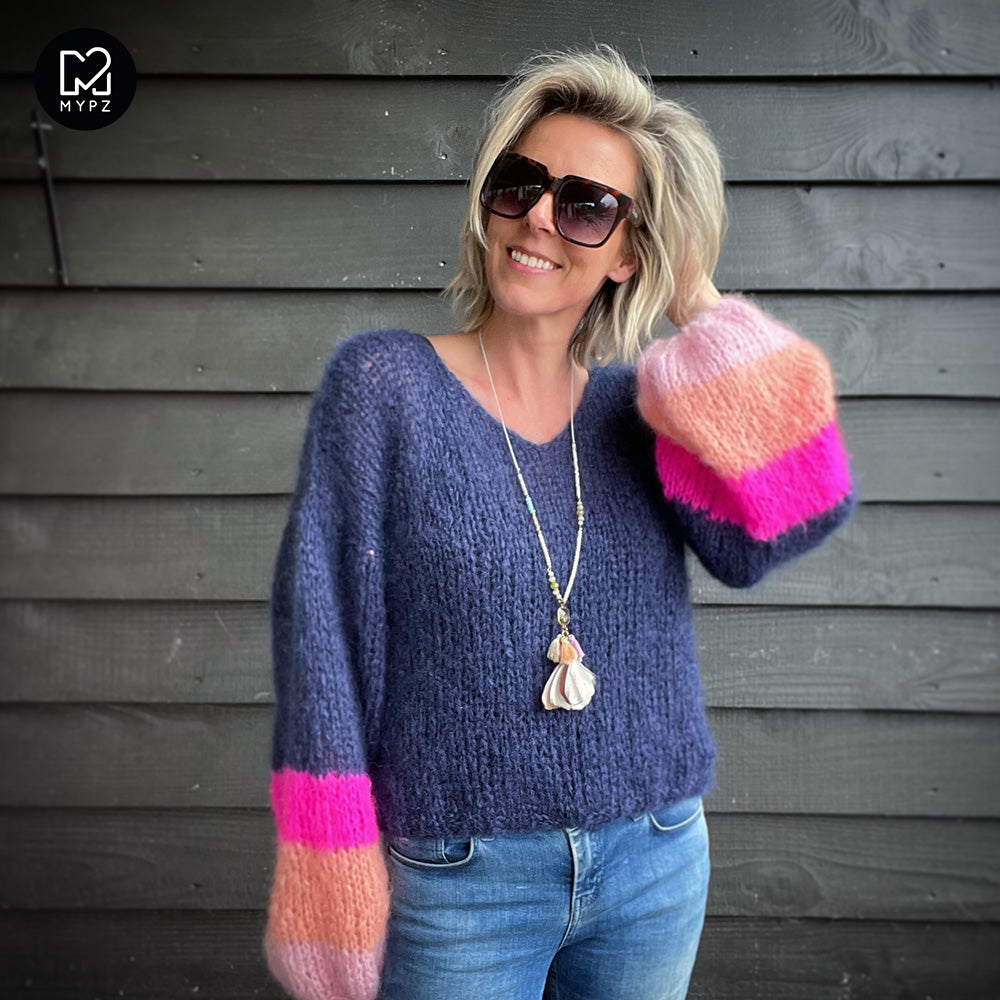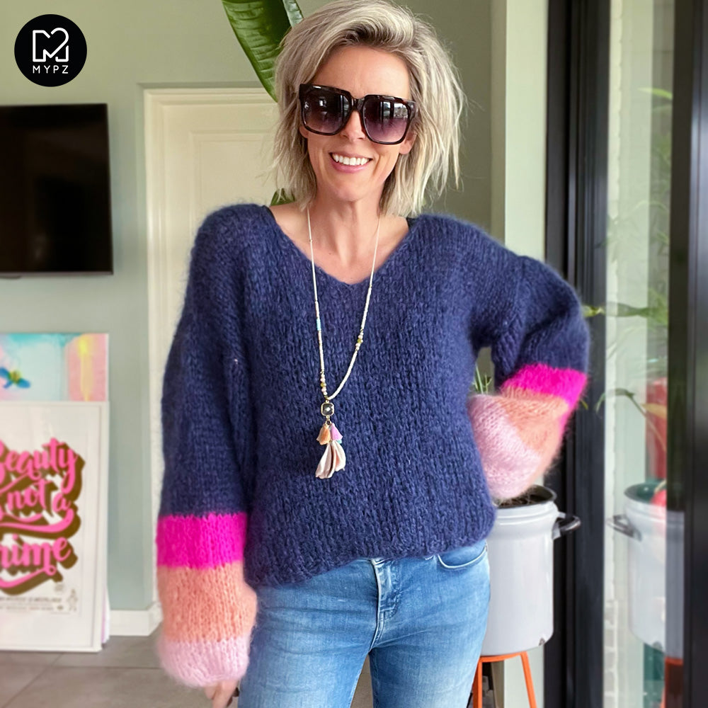 Breipakket – MYPZ Basic Light Mohair v-hals trui Sapphire no10 (ENG-NL)
