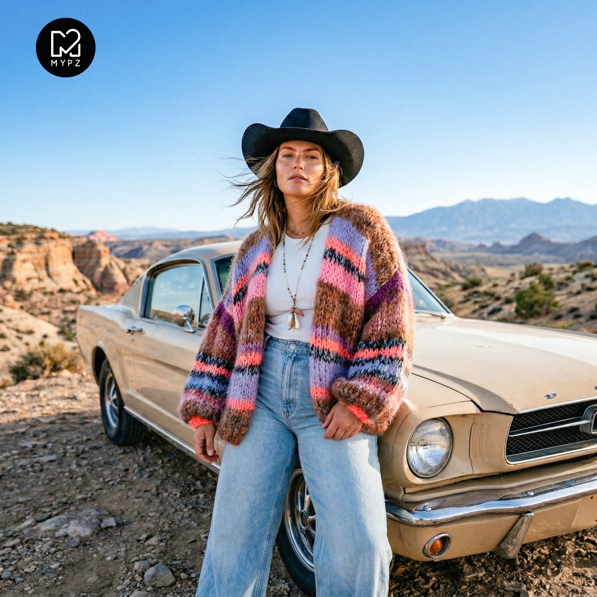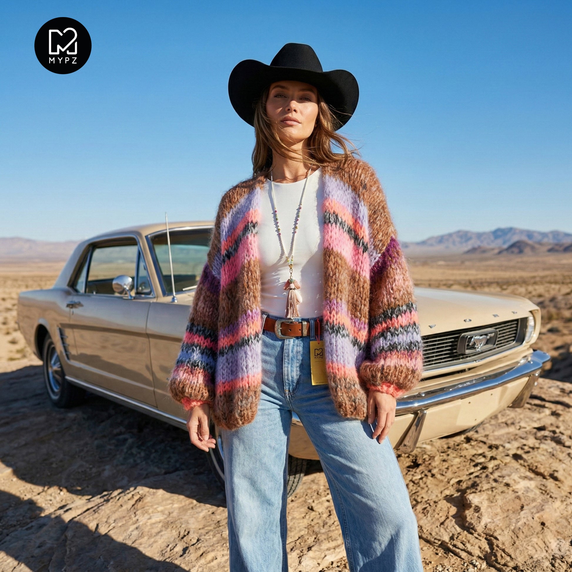 Het is zeer licht, warm en comfortabel. Deze kit bevat MYPZ Chunky Kidmohair DK, een hoogwaardige fijne geborstelde mohair die niet pilt. Deze geborstelde garens kunnen wat haren, maar na verloop van tijd zal dit afnemen.