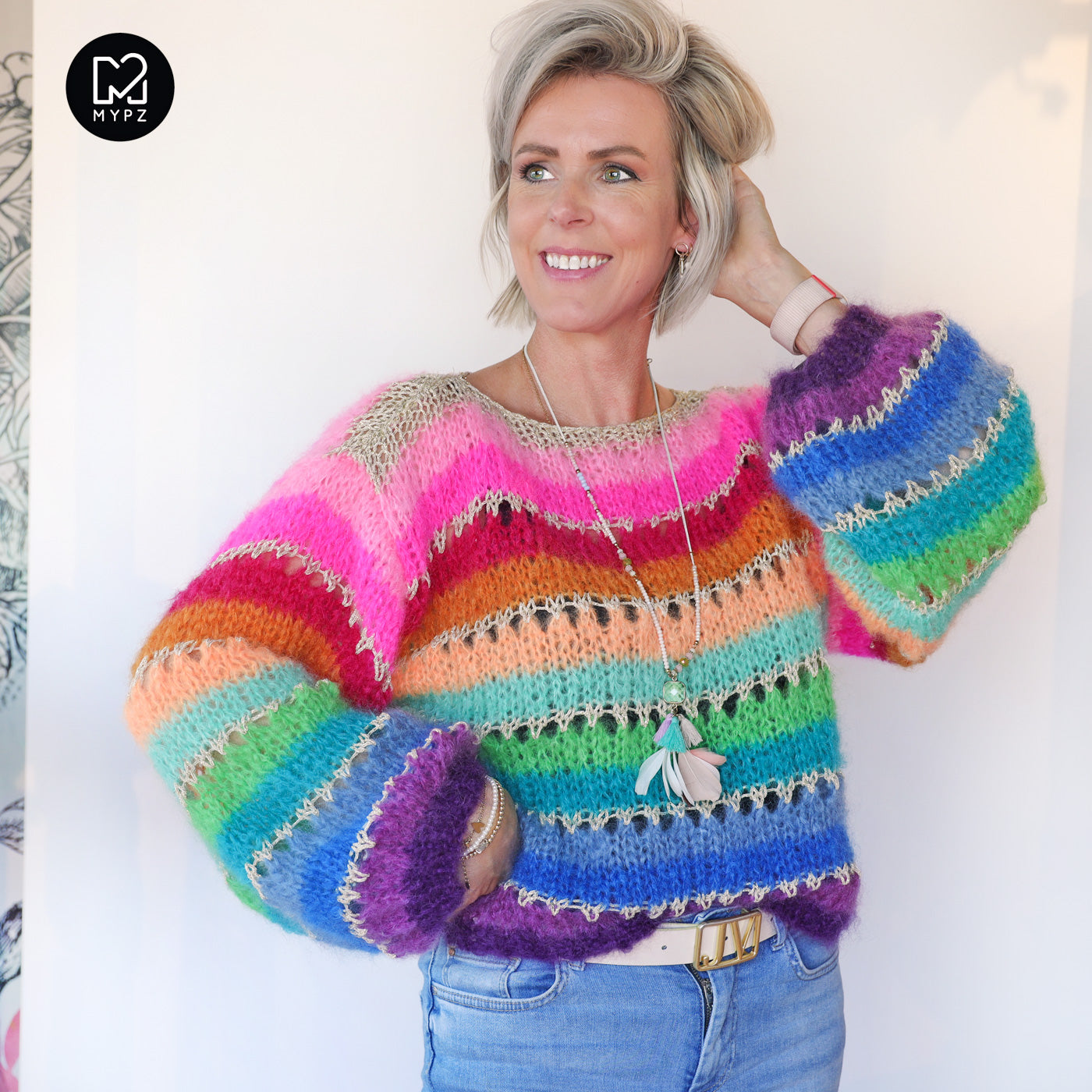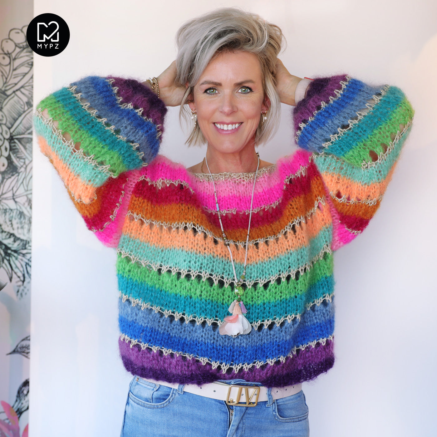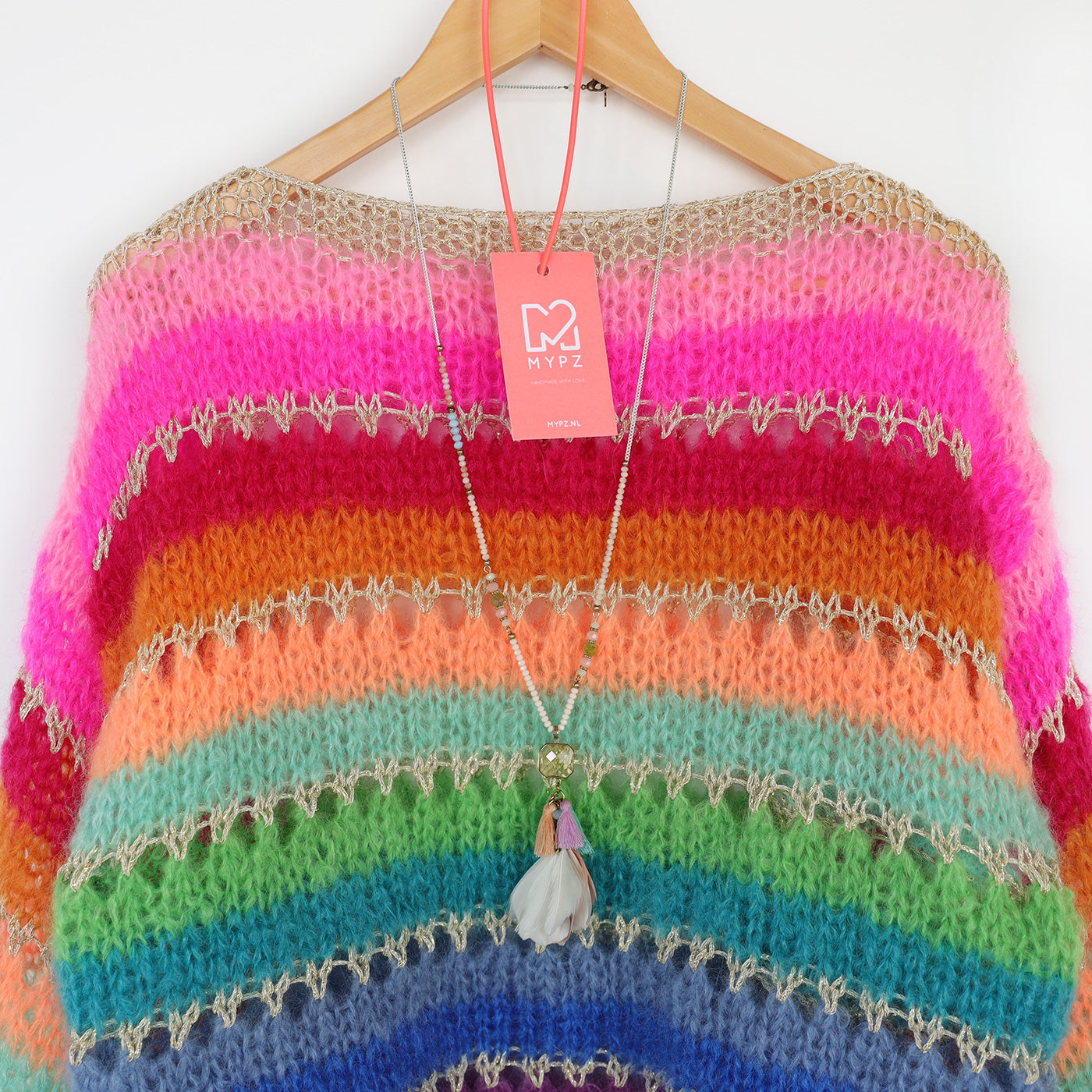 This is a handmade knit made by MYPZ in The Netherlands. Each cardigan or sweater is a unique piece and we take a lot of time and care to create these beautiful products. This beautiful sweater is made of a high quality mohair and does not pill. It is very light, warm and comfortable. These brushed yarns may shed a little but after a while, this will subside.