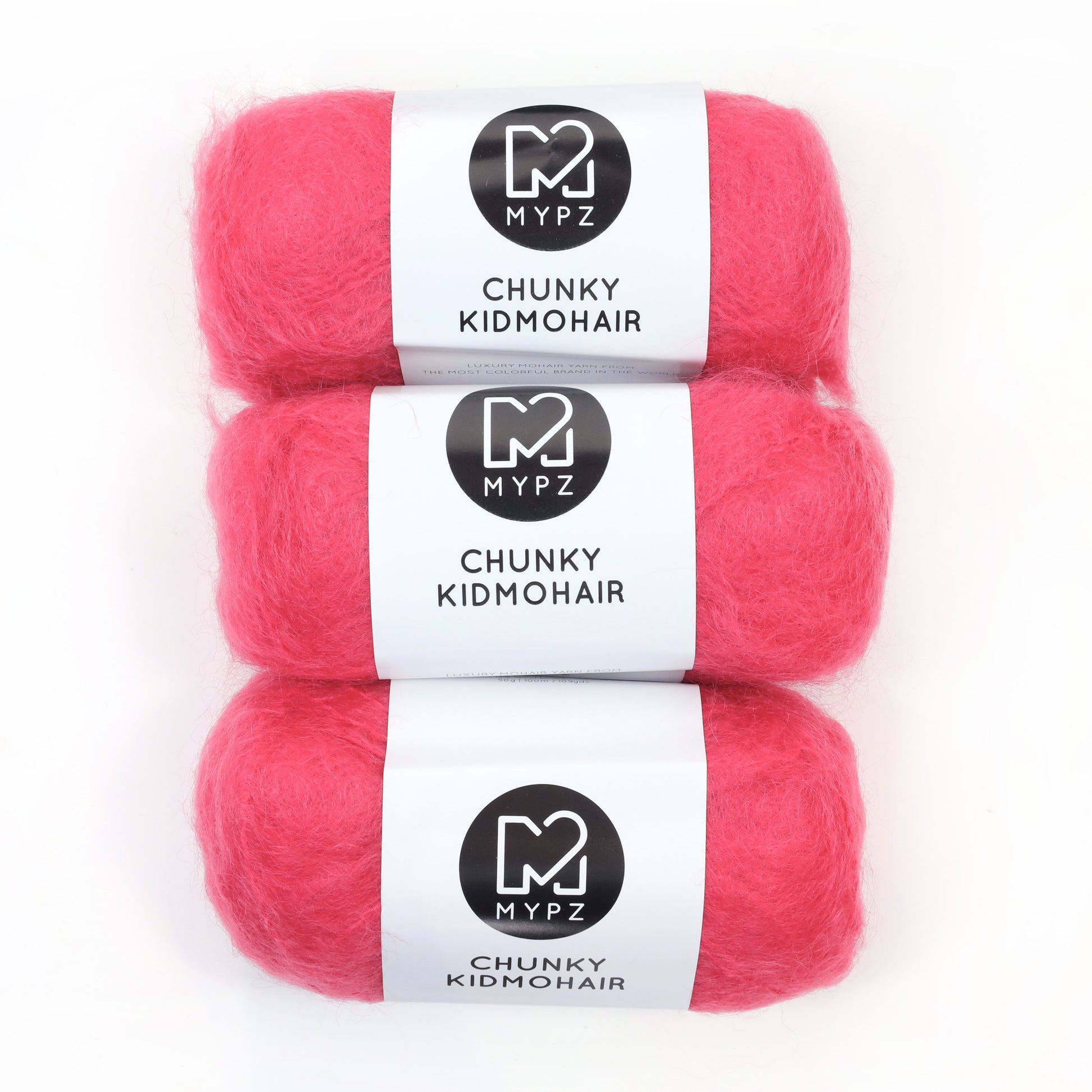 Dit garen is super veelzijdig! Onze MYPZ Chunky Kidmohair DK is officieel geschikt voor naalddikte 5–6 mm, maar wij houden ervan om er creatief mee te zijn. Je kunt het ook prachtig breien met een 10 mm naald voor een luchtiger en losser effect.